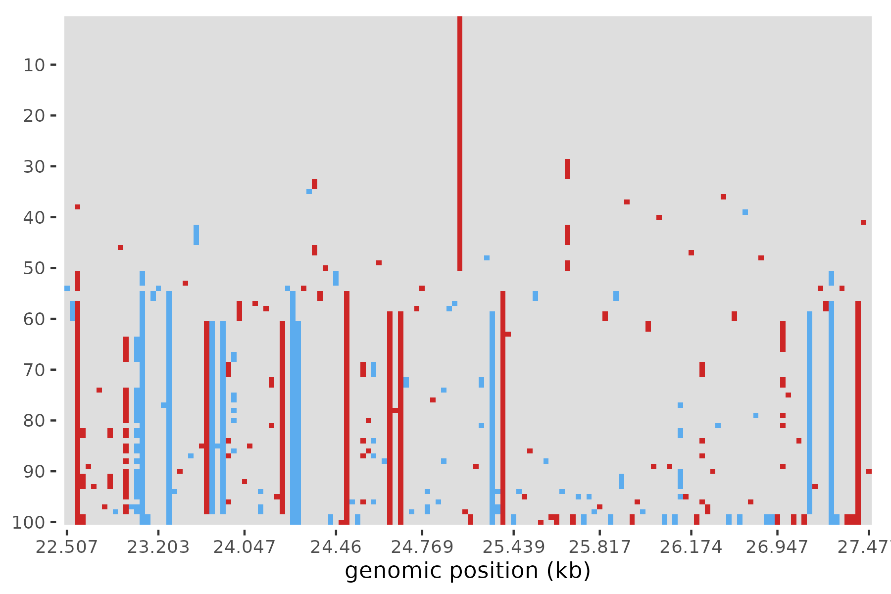 Haplotype Visualizer – This repo provides an R script to construct ‘haplotype plots’ of genetic variation in a genomic window, using delimited files or numpy arrays of genetic variants.